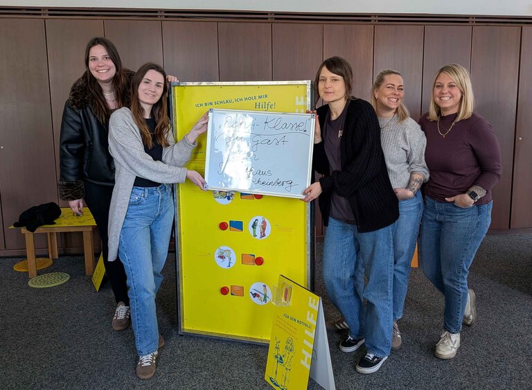 Bild (von links nach rechts): Frau Mahm, Jugendamt Rheinberg; Frau Hegel, Jugendamt Rheinberg; Frau Deipenwiesch, Caritas Moers-Xanten; Frau Handwerk, Caritas Moers-Xanten; Frau Wagner, Caritas Moers-Xanten